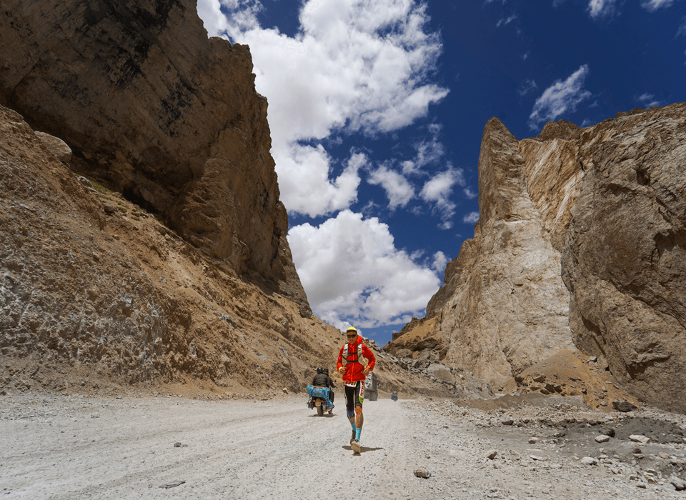 480 Kilometer auf dem Leh-Manali-Highway – eine Strecke, die weniger an einen Lauf erinnert als an eine spirituelle Prüfung. Dabei permanent auf über 4.000 Meter Höhe, dort, wo der Wind mit der Seele spricht und jeder Atemzug ein Kampf ist. Der Tanglang La Pass – 5.317 Meter über dem Meer – markiert den Punkt, an dem selbst Gedanken schwer werden. Der Name ist Programm: Hölle und Himmel liegen hier nur einen Schritt auseinander.